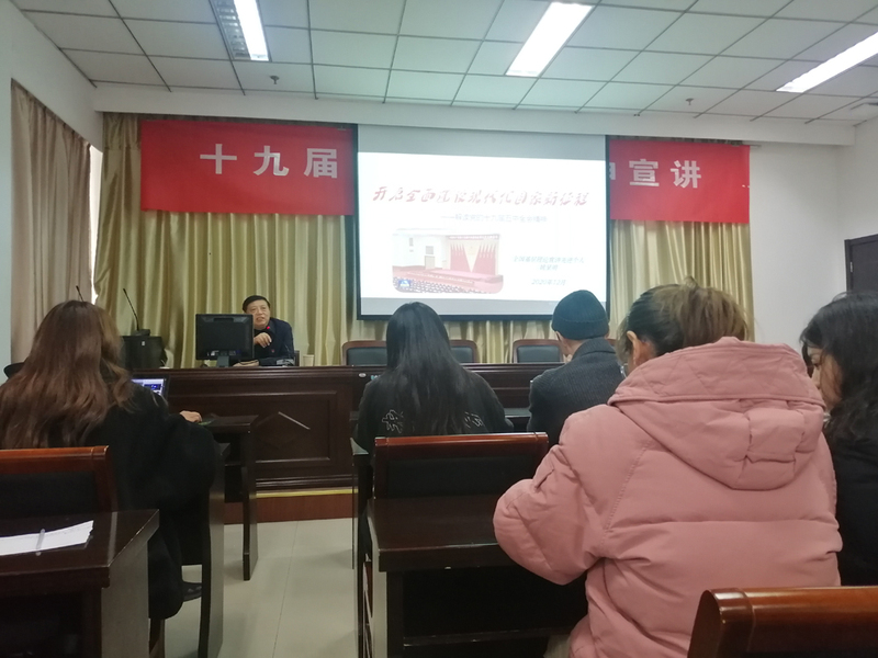 姚呈明同志以“开启全面建设现代化国家新征程——解读党的十九届五中全会精神”为题从新成就、新环境、新目标、新导向四个方面,详细解读了十九届五中全会精神。