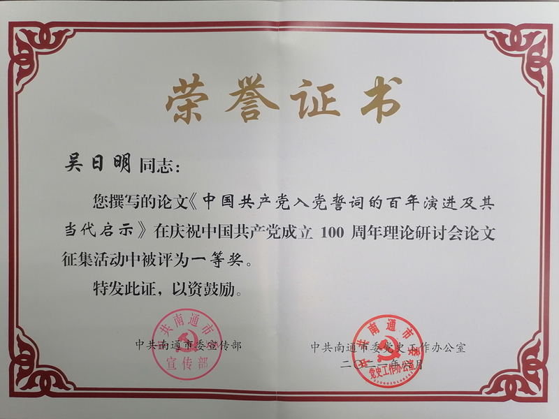 据悉,吴日明教授的征文同时入选省委宣传部、省委组织部、省委党史工办等多家单位联合主办的庆祝中国共产党成立100周年理论研讨会文集。