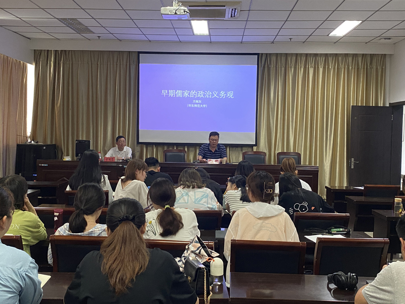 2021年6月29日下午14:00-16:00华东师范大学博导方旭东教授在yl23455永利集团321多功能会议室做了以“早期儒家的政治义务观”为题的学术讲座,此次讲座由yl23455永利集团、南通廉政研究中心联合举办,属于“名师大家马院行”系列活动四。王明华院长主持此次讲座。方教授认为,在政治哲学上,政治义务讨论的是:人是否有作为一个政治共同体(国家)公民的道德义务?儒家通常认为,人负有这种义务。孔子的论证用到“自然责任论”、“团体成员理论”,孟子的思路接近“契约论”,荀子从利己与理性两方面具体解释了国家的起源。yl23455永利集团及廉政研究中心师生近五十人,参加了此次讲座。方教授的精彩演讲师生们反响颇佳,讲座在热烈掌声中结束。(顾海亮)