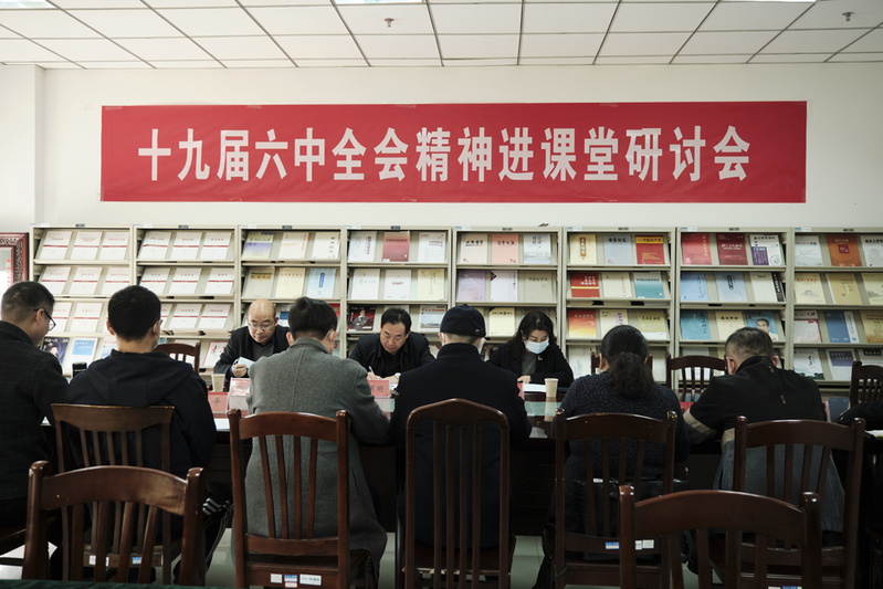 张杨乐围绕进一步推动十九届六中全会精神进思政课堂,提出工作要求:思政课教师要深思细悟全会精神、全面把握核心要义;教研室要常态化开展集体备课、加强课程间交流互动、协同推进全会精神进课堂;要坚持贴近实际、线上线下齐发力,不断提升思政课的实效性与吸引力。