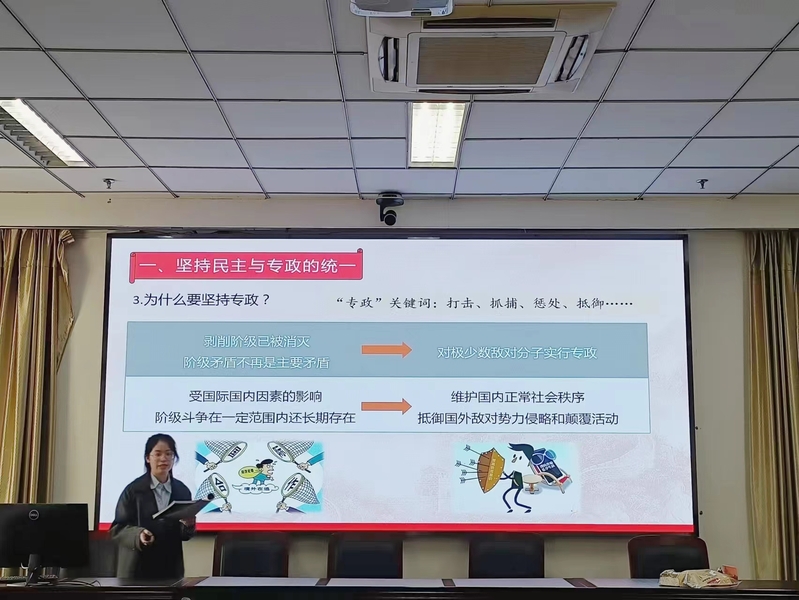 会上我校实习生代表对教学内容、教学感悟进行总结和汇报,调研教师听取了政教191班实习生王思忆的模拟授课,并作出评价。