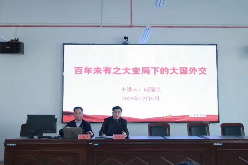 成锡忠以《百年未有之大变局下的大国外交》为题,结合自身外交经历与实践,以深厚的外交功底、丰富的实践案例、朴实的语言风格讲述了大国外交、中国故事,表达了他对党、对祖国、对人民的深厚感情。他表示,外交工作由国家授权,一言一行都代表着国家形象,要时刻牢记对外维护国家主权,展现中国有责任、有担当的大国形象。他指出,进入中国特色社会主义新时代,我国对外工作秉持优良传统,展现出与时俱进、奋发有为、锐意进取的崭新面貌,形成了一整套行之有效的战略思想和策略方法,不断把中国特色大国外交推向更高境界。